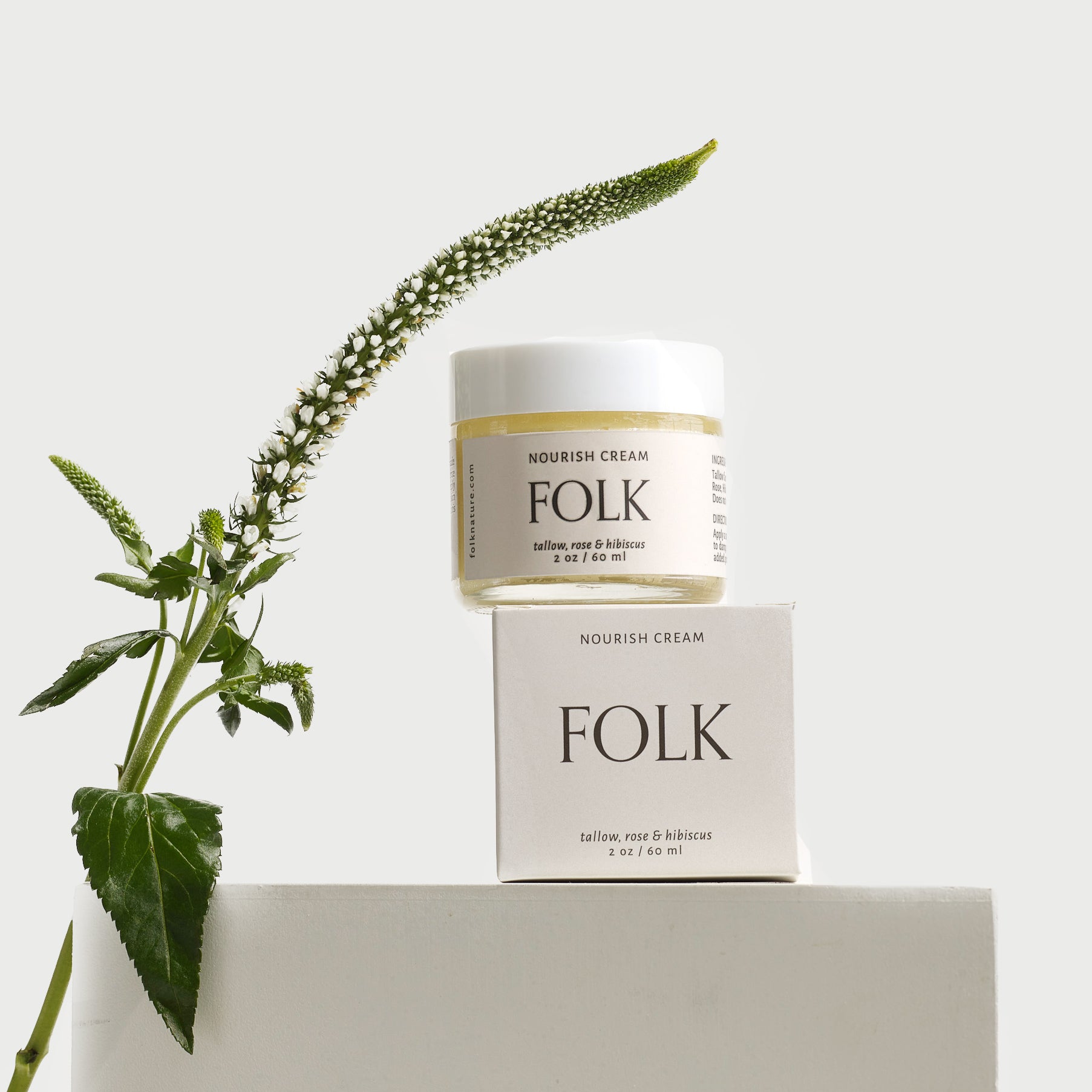 Our tallow based Nourish Cream is a rich and nutrient-dense cream with supportive flowers and healing plants that deeply absorb into the skin to restore skin barrier function for lasting hydration and skin healing at the cellular level. We slowly infuse rose petals, hibiscus flowers and wild harvested cedar for powerful, radiant results. For dryness to dermatitis and everything in between.